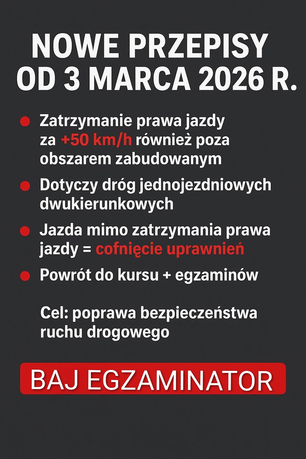Ważne zmiany! Od 3 marca 2026 r. kierowcy przekraczający prędkość o ponad 50 km/h na drodze jednojezdniowej dwukierunkowej poza obszarem zabudowanym będą narażeni na natychmiastowe zatrzymanie prawa jazdy. To rozszerzenie obecnych przepisów, które dziś obejmują tylko obszar zabudowany. Dlaczego? Ministerstwo […]